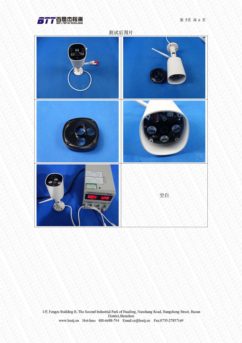 2018年7月,普順達的158型號室外槍機,通過IPX5測試,該款攝像機具有室外防水功能,下面是檢測報告。