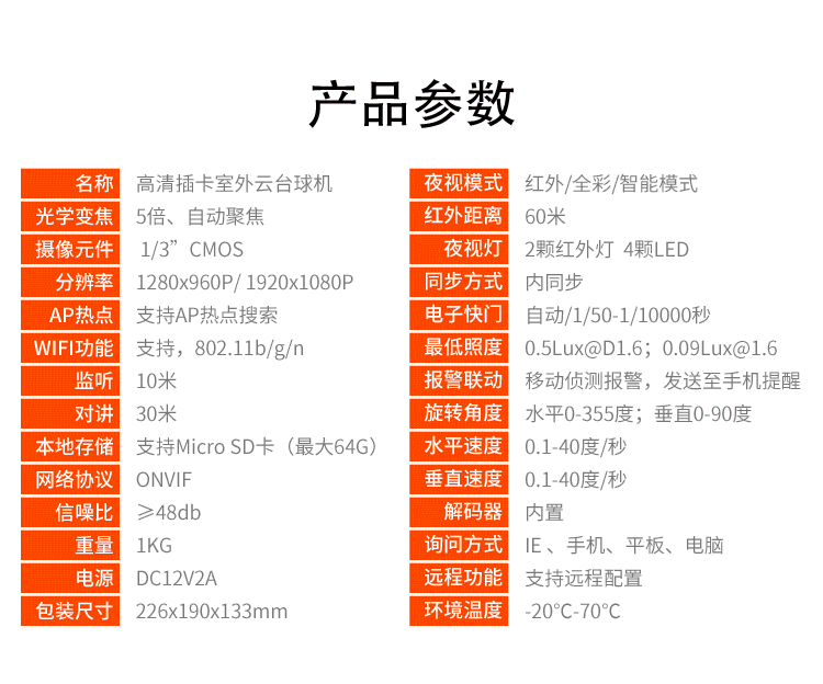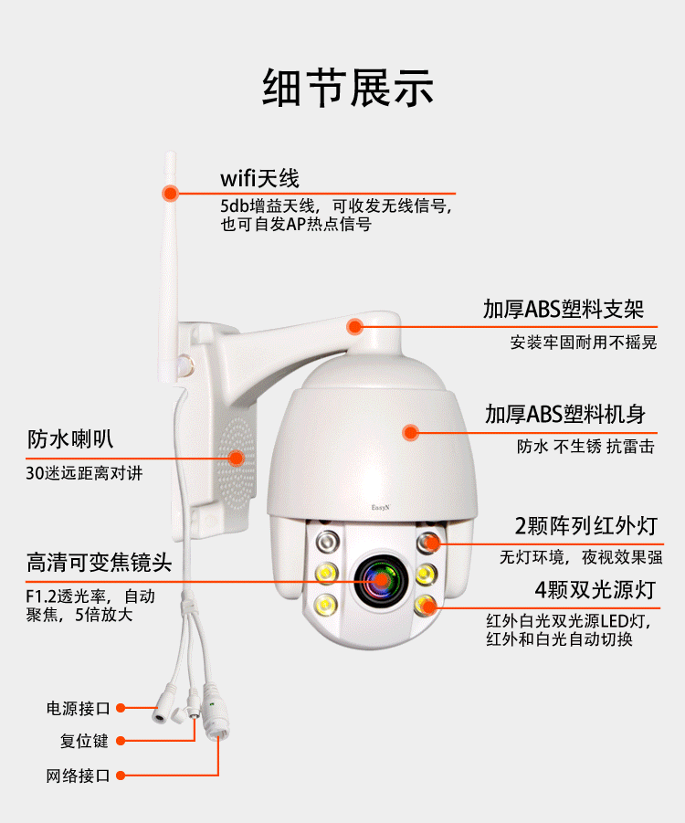 1080P高清、全彩夜視、旋轉(zhuǎn)監(jiān)控、5倍變焦 詳細(xì)